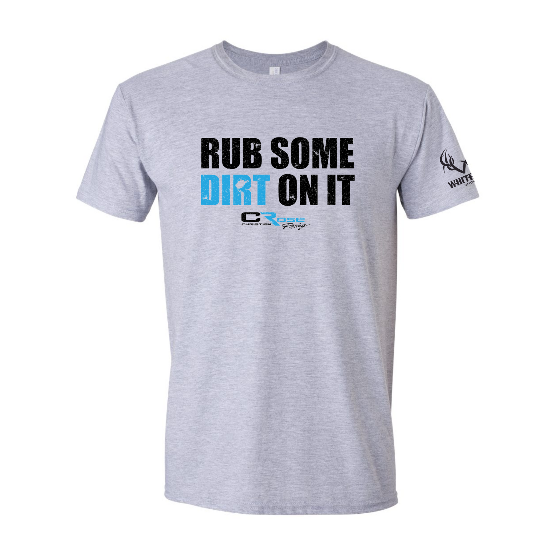 These super soft performance heather gray shirts feature the new "Rub Some Dirt On It - Christian Rose Racing" logo on the chest, the "almost heaven" logo on the back neck and the "Whitetail Smokeless" logo on the sleeve.