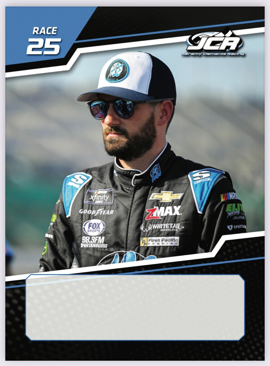 There will be 51 cards for each of the 33 races in 2022. Each card in the series will feature a photo from the race as well as a recap/highlights from the race as well as listing the starting and finishing position. Each card will be hand numbered “x of 51”. Jeremy will then sign each card.