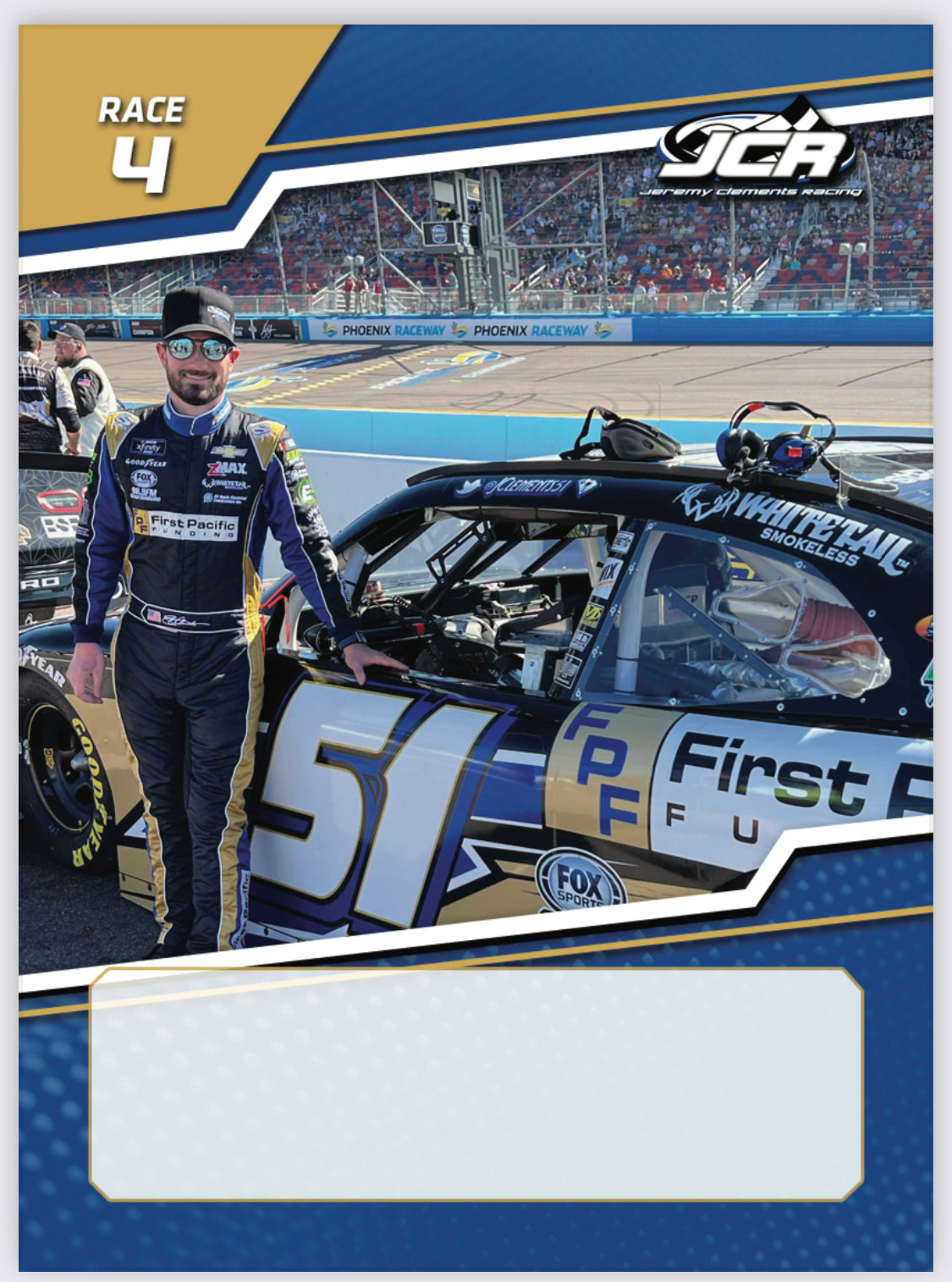 There will be 51 cards for each of the 33 races in 2022. Each card in the series will feature a photo from the race as well as a recap/highlights from the race as well as listing the starting and finishing position. Each card will be hand numbered “x of 51”. Jeremy will then sign each card.