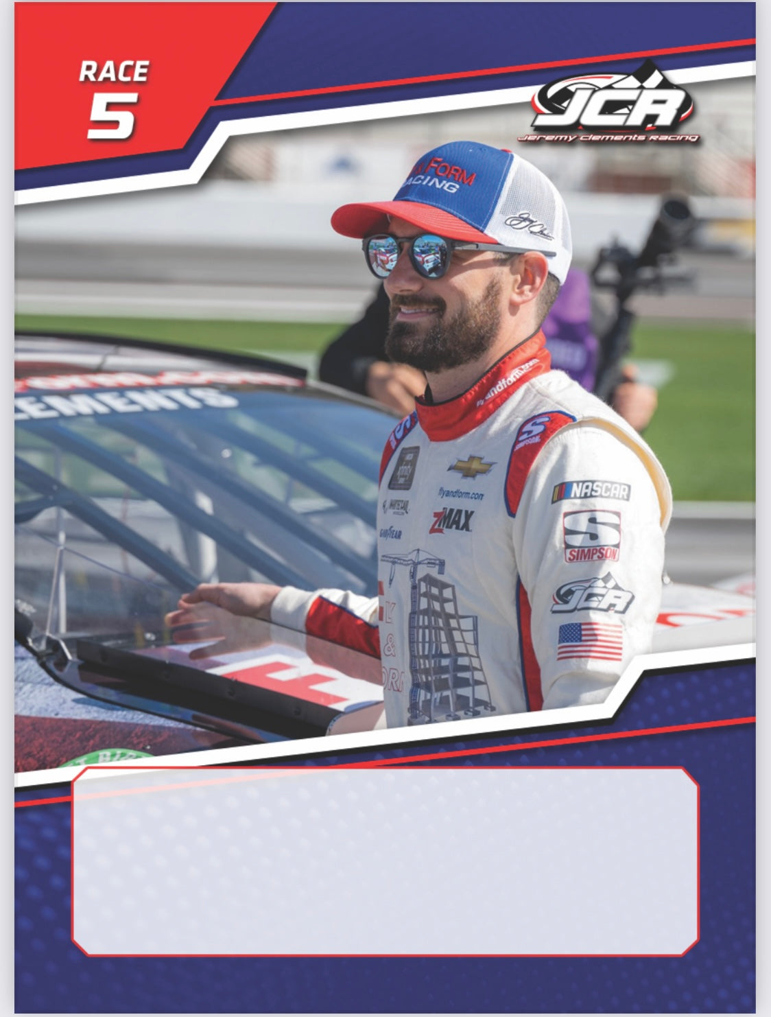 Jeremy Clements signed limited edition trading cards, races 1-5