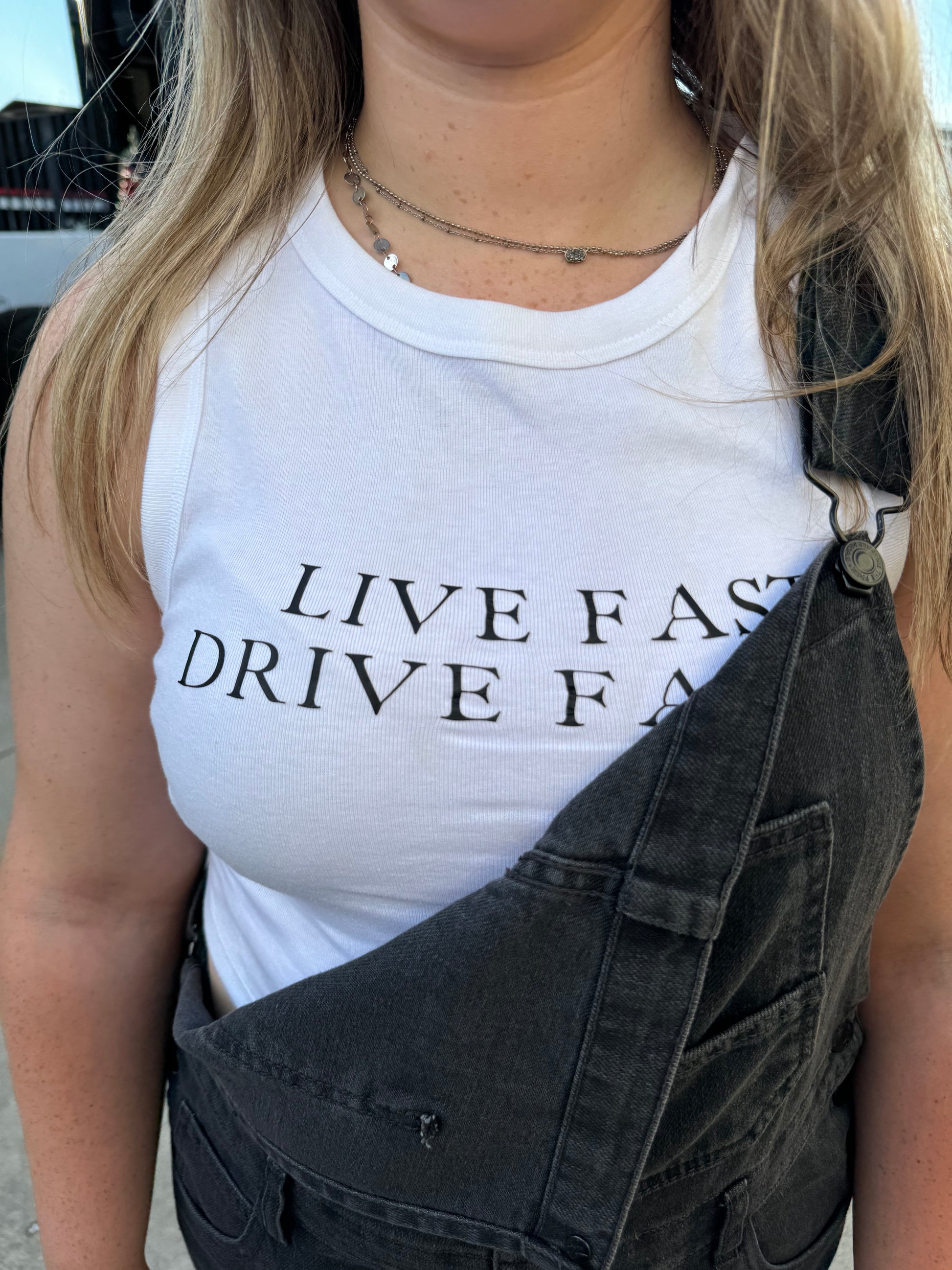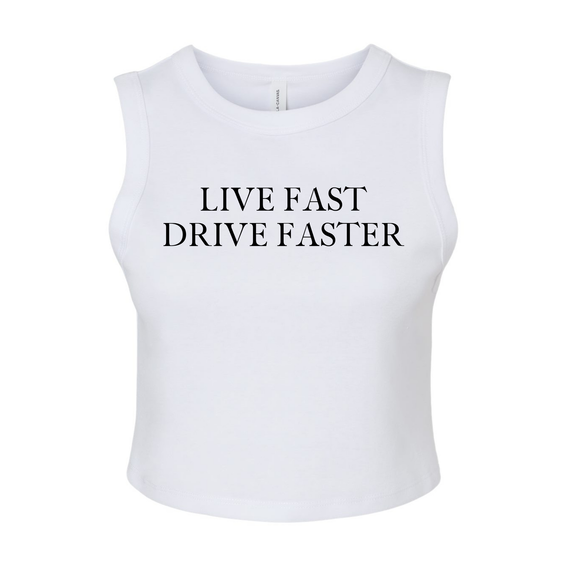 “Live Fast Drive Faster” Crop Muscle Tank Top